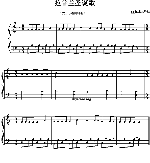 外国民歌改编钢琴曲:拉普兰圣诞歌免费钢琴谱_五线谱: 点击: 1000 图片可能经过缩放,手机长按或点开后长按保存,电脑鼠标右键保存.
