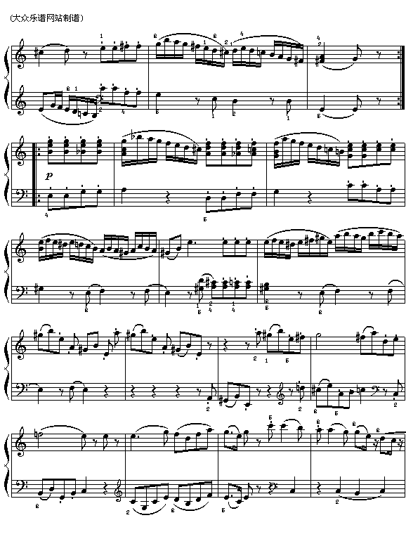 浪漫曲(选自《G大调弦乐小夜曲》第二乐章)免费钢琴谱_五线谱:莫扎特音乐作品浅易乐谱 点击: 1000 图片可能经过缩放,手机长按或点开后长按保存,电脑鼠标右键保存.