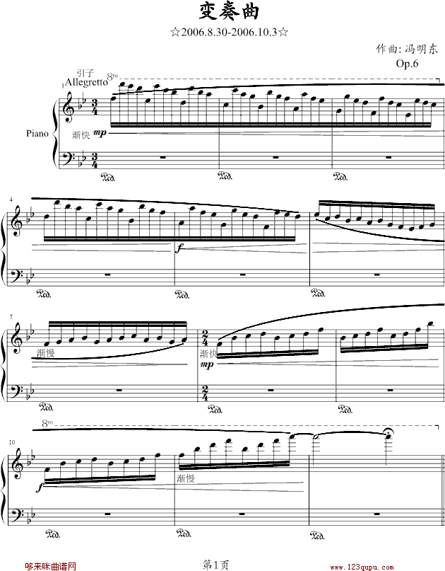 变奏曲-冯明东免费钢琴谱_五线谱:未知 点击: 1000 图片可能经过缩放,手机长按或点开后长按保存,电脑鼠标右键保存.