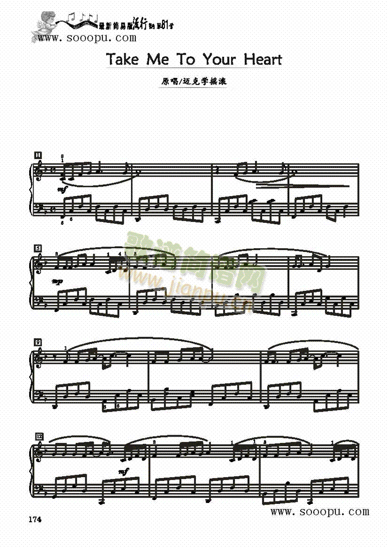 Take me to your heart—简易版 键盘类 钢琴免费钢琴谱_五线谱:迈克学摇滚 点击: 1000 图片可能经过缩放,手机长按或点开后长按保存,电脑鼠标右键保存.