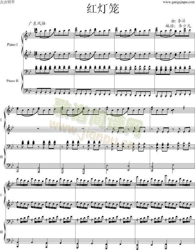红灯笼免费钢琴谱_五线谱:李洋 点击: 1000 图片可能经过缩放,手机长按或点开后长按保存,电脑鼠标右键保存.