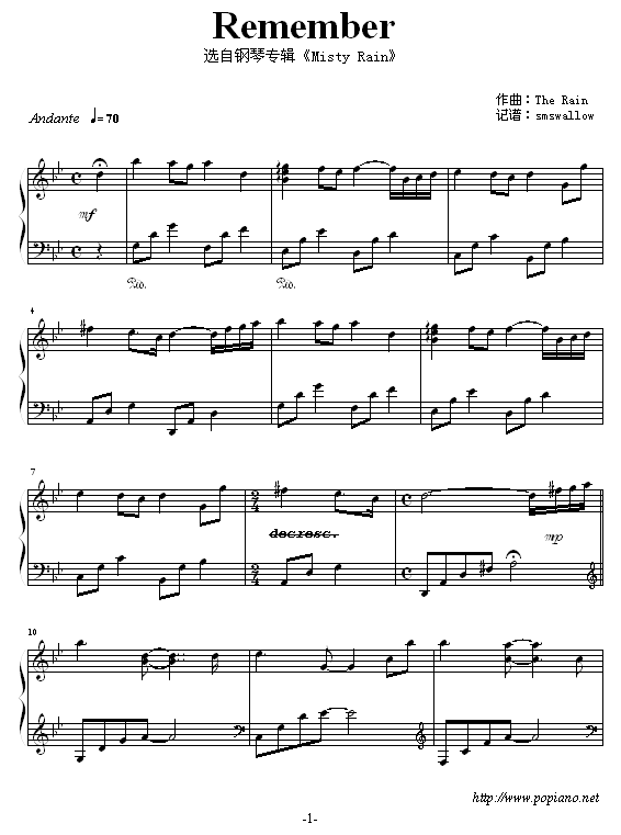 remember免费钢琴谱_五线谱:未知 点击: 1000 图片可能经过缩放,手机长按或点开后长按保存,电脑鼠标右键保存.