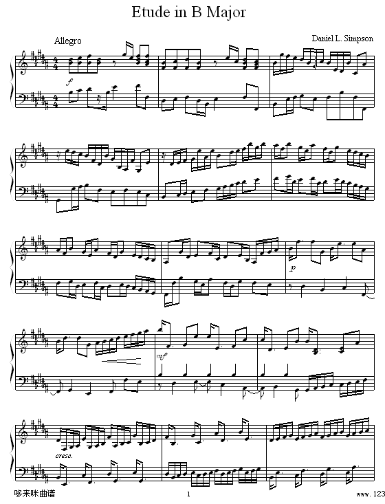 Etude in B Major-Daniel L.Simpson免费钢琴谱_五线谱:未知 点击: 1000 图片可能经过缩放,手机长按或点开后长按保存,电脑鼠标右键保存.