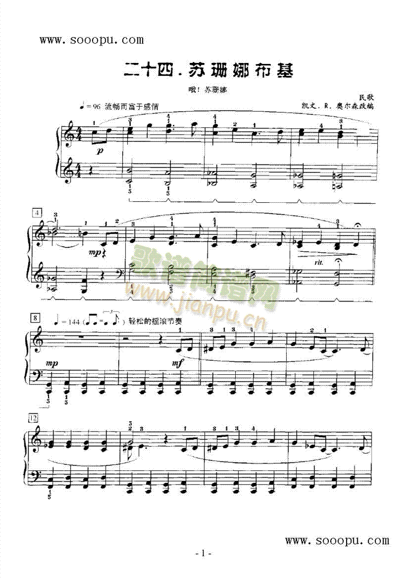 苏珊娜布基 键盘类 钢琴免费钢琴谱_五线谱:民歌 点击: 1000 图片可能经过缩放,手机长按或点开后长按保存,电脑鼠标右键保存.