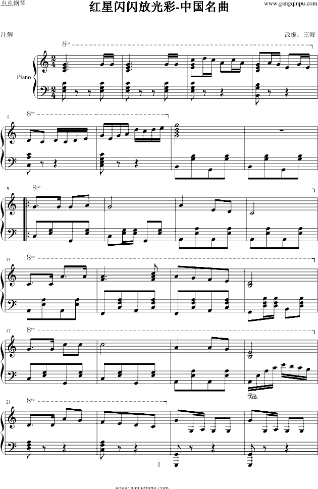 红星闪闪放光彩《改编版》--最新修改-钢琴谱(钢琴曲)-儿童歌曲免费钢琴谱_五线谱: 点击: 1000 图片可能经过缩放,手机长按或点开后长按保存,电脑鼠标右键保存.