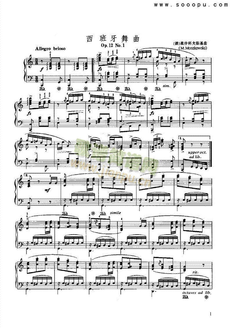 西班牙舞曲 键盘类 钢琴免费钢琴谱_五线谱:莫什科夫斯基 点击: 1000 图片可能经过缩放,手机长按或点开后长按保存,电脑鼠标右键保存.