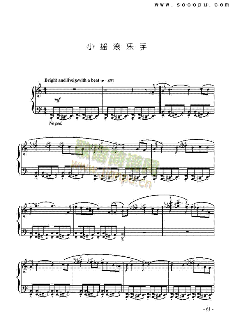 小摇滚乐手 键盘类 钢琴免费钢琴谱_五线谱:爵士钢琴 点击: 1000 图片可能经过缩放,手机长按或点开后长按保存,电脑鼠标右键保存.