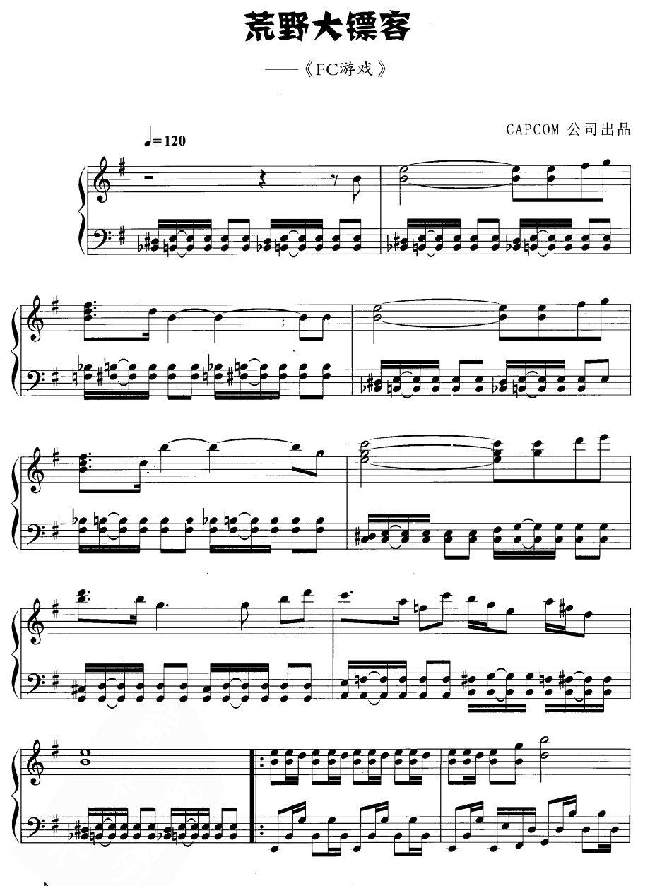 荒野大镖客(FC游戏)免费钢琴谱_五线谱: 点击: 1000 图片可能经过缩放,手机长按或点开后长按保存,电脑鼠标右键保存.