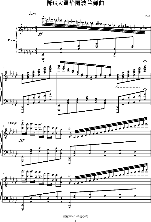 降G大调华丽波兰舞曲免费钢琴谱_五线谱:心兰 点击: 1000 图片可能经过缩放,手机长按或点开后长按保存,电脑鼠标右键保存.