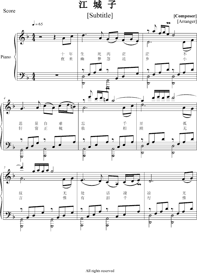 江城子-钢琴谱(钢琴曲)-项海波免费钢琴谱_五线谱: 点击: 1000 图片可能经过缩放,手机长按或点开后长按保存,电脑鼠标右键保存.