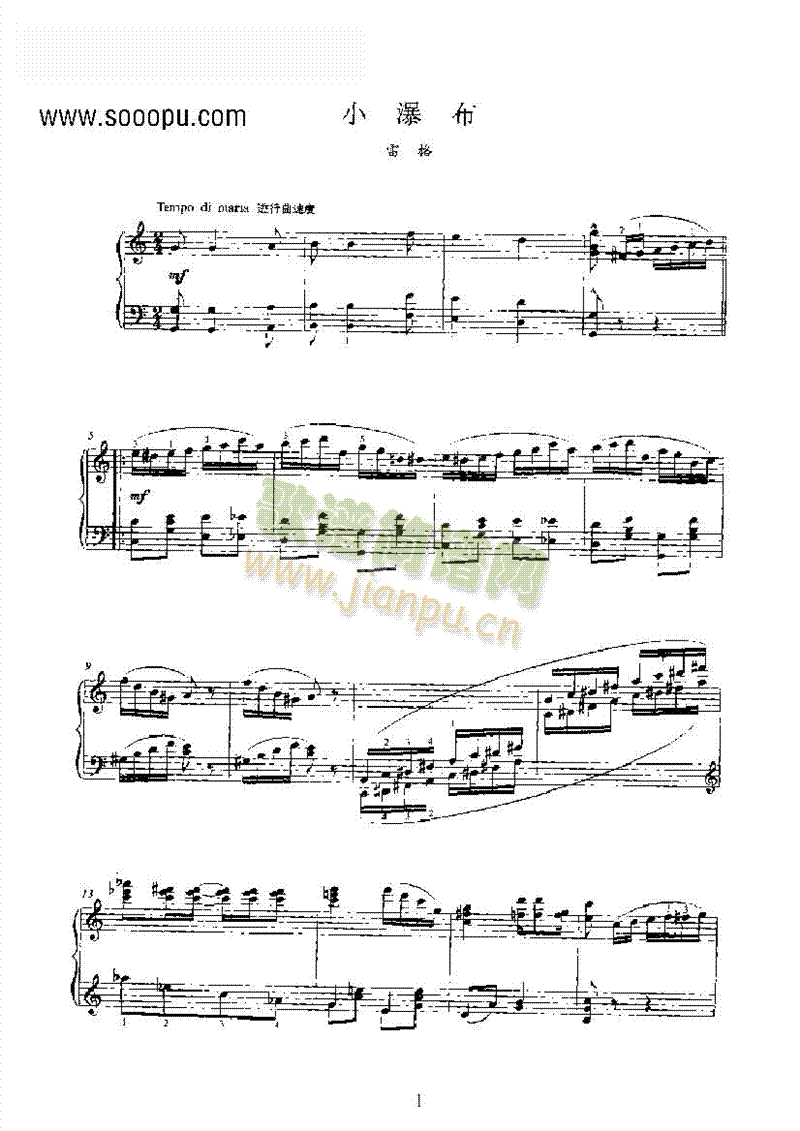 小瀑布 键盘类 钢琴免费钢琴谱_五线谱:雷格泰姆 点击: 1000 图片可能经过缩放,手机长按或点开后长按保存,电脑鼠标右键保存.