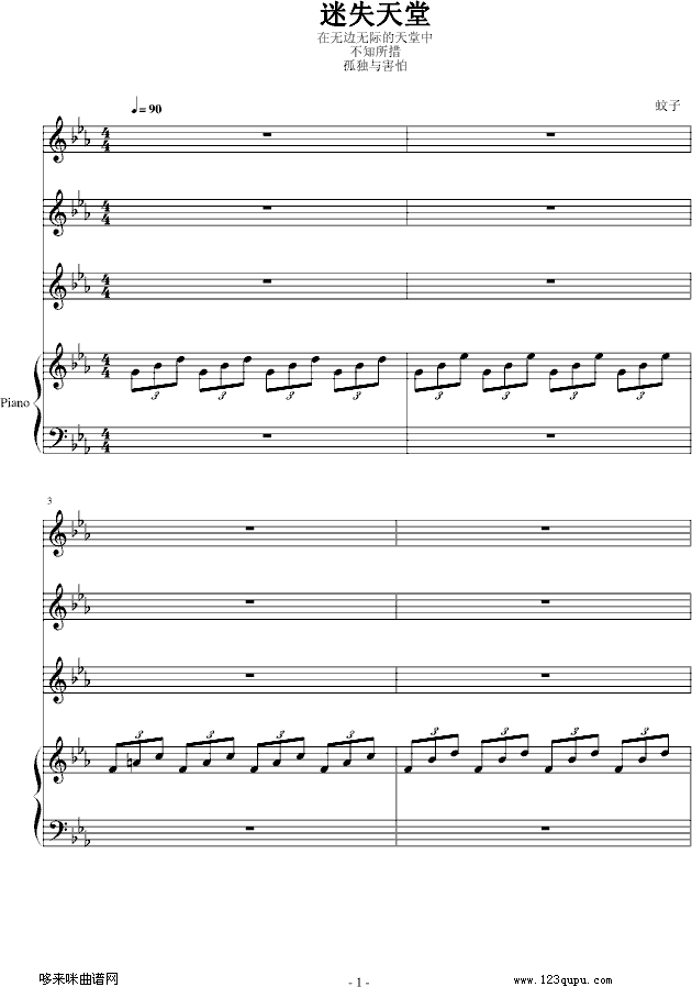 迷失天堂)-圆圆怕蚊子免费钢琴谱_五线谱:未知 点击: 1000 图片可能经过缩放,手机长按或点开后长按保存,电脑鼠标右键保存.