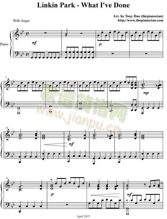 what I`ve done免费钢琴谱_五线谱: 点击: 1000 图片可能经过缩放,手机长按或点开后长按保存,电脑鼠标右键保存.