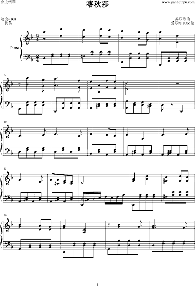 喀秋莎-钢琴谱(钢琴曲)-世界名曲免费钢琴谱_五线谱: 点击: 1000 图片可能经过缩放,手机长按或点开后长按保存,电脑鼠标右键保存.