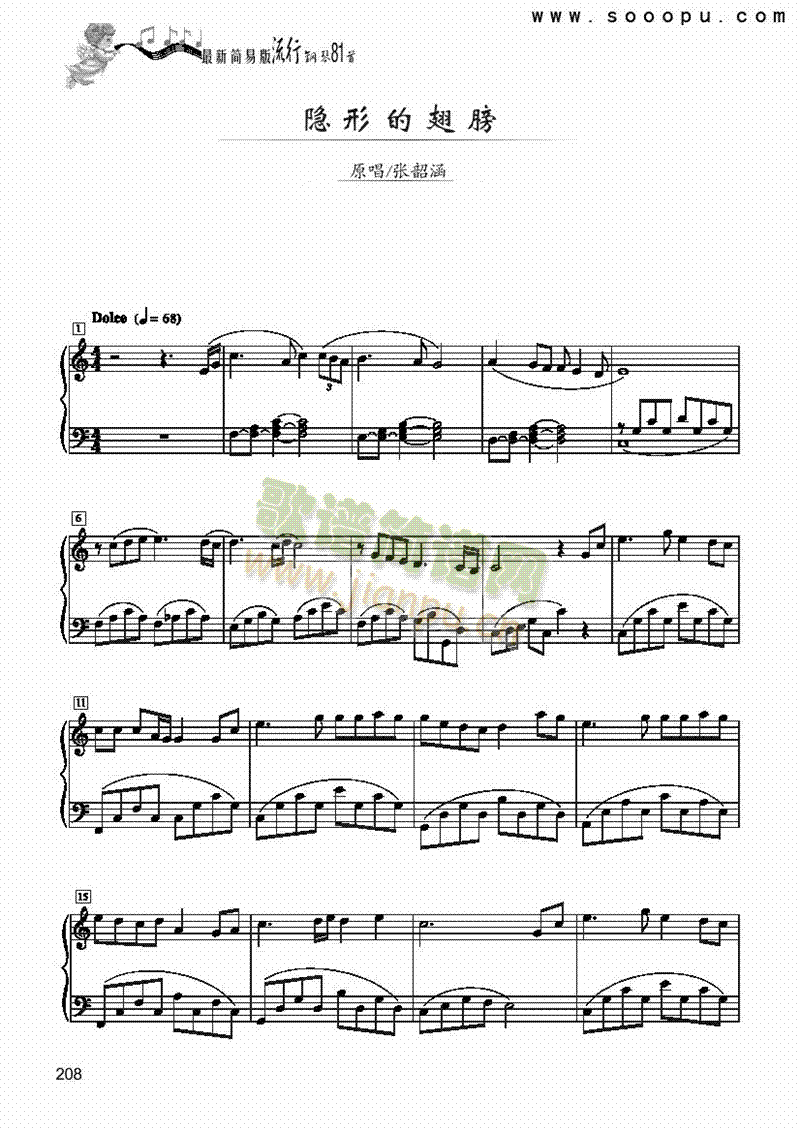 隐形的翅膀-简易版 键盘类 钢琴免费钢琴谱_五线谱:张韶涵 点击: 1000 图片可能经过缩放,手机长按或点开后长按保存,电脑鼠标右键保存.