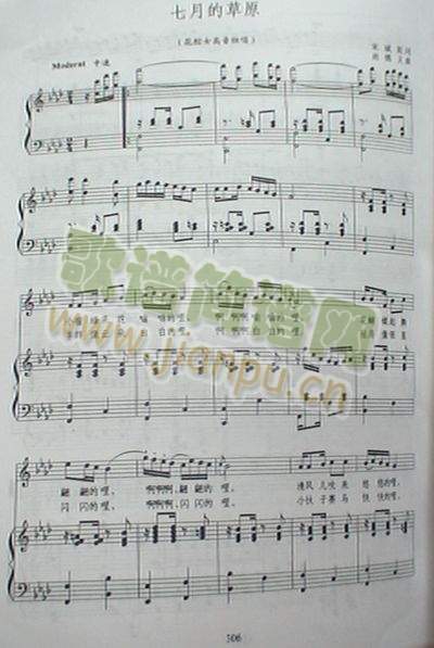 七月的草原免费钢琴谱_五线谱:王莹 点击: 1000 图片可能经过缩放,手机长按或点开后长按保存,电脑鼠标右键保存.