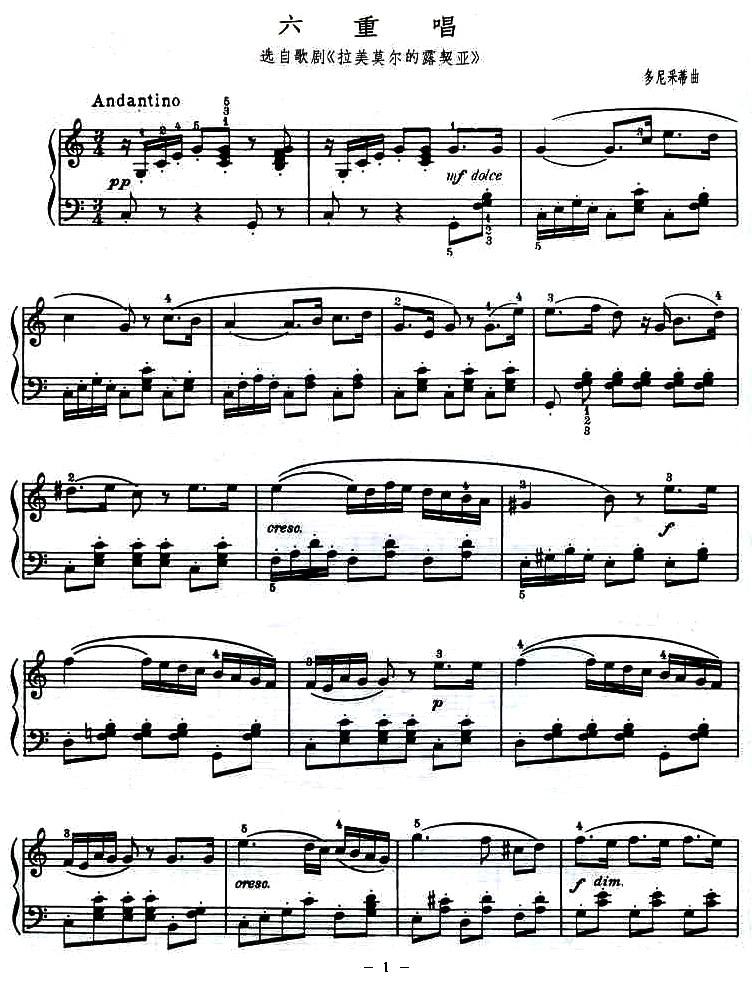 六重唱(钢琴谱)免费钢琴谱_五线谱: 点击: 1000 图片可能经过缩放,手机长按或点开后长按保存,电脑鼠标右键保存.