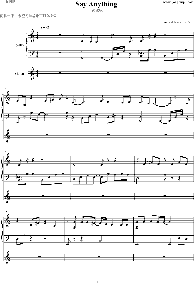 say anything-钢琴谱(钢琴曲)-X-JAPAN免费钢琴谱_五线谱: 点击: 1000 图片可能经过缩放,手机长按或点开后长按保存,电脑鼠标右键保存.