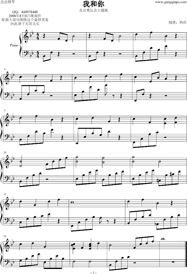 我和你(北京奥运会主题歌)免费钢琴谱_五线谱:刘欢 点击: 1000 图片可能经过缩放,手机长按或点开后长按保存,电脑鼠标右键保存.