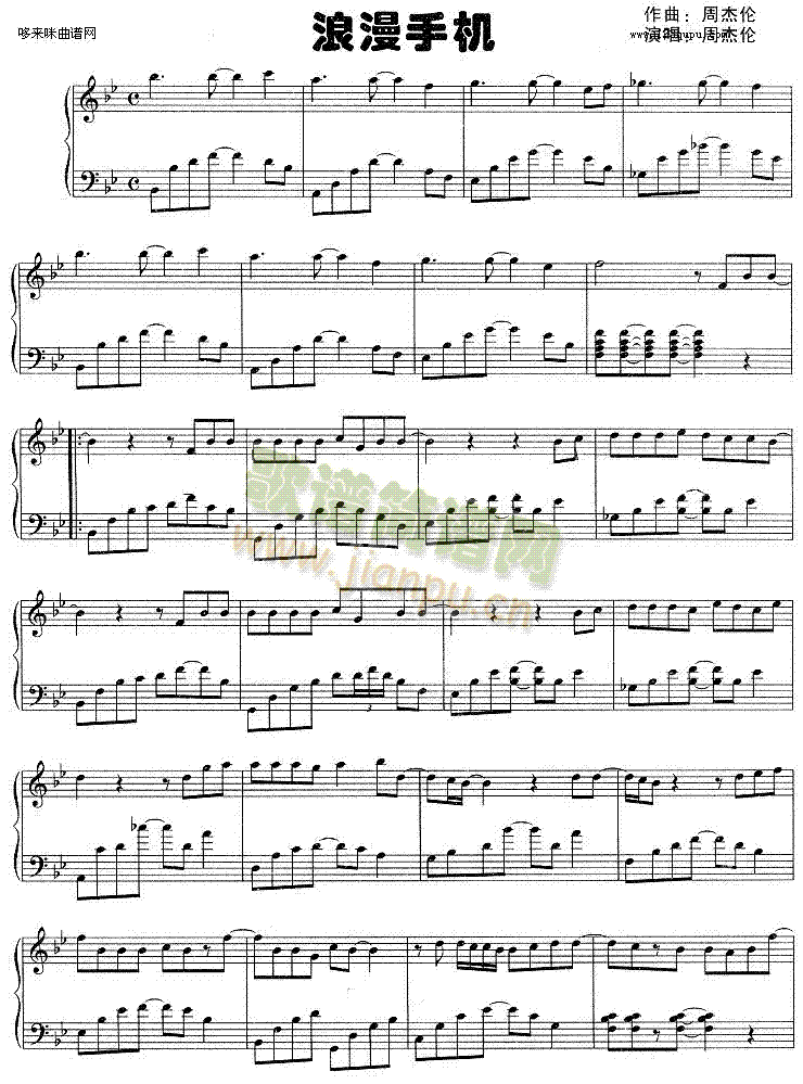 浪漫手机(周杰伦)免费钢琴谱_五线谱:未知 点击: 1000 图片可能经过缩放,手机长按或点开后长按保存,电脑鼠标右键保存.