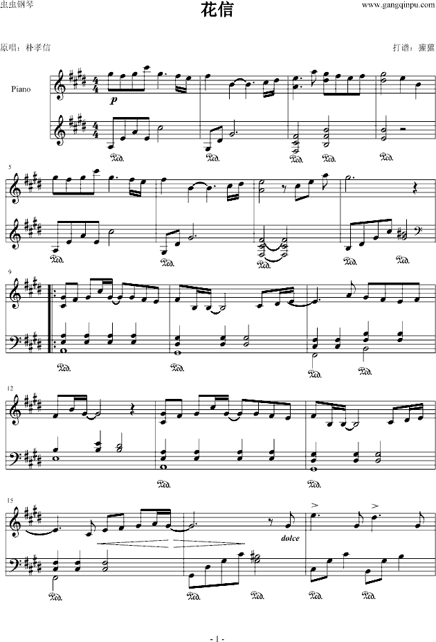 《花信》原调-钢琴谱(钢琴曲)-韩日剧免费钢琴谱_五线谱: 点击: 1000 图片可能经过缩放,手机长按或点开后长按保存,电脑鼠标右键保存.
