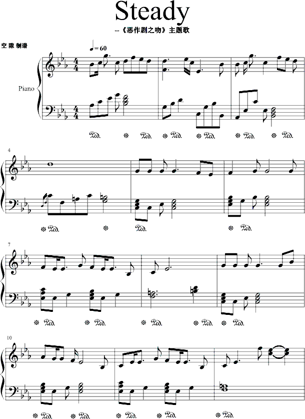 Steady-惡作劇之吻主题歌免费钢琴谱_五线谱:林依晨 点击: 1000 图片可能经过缩放,手机长按或点开后长按保存,电脑鼠标右键保存.