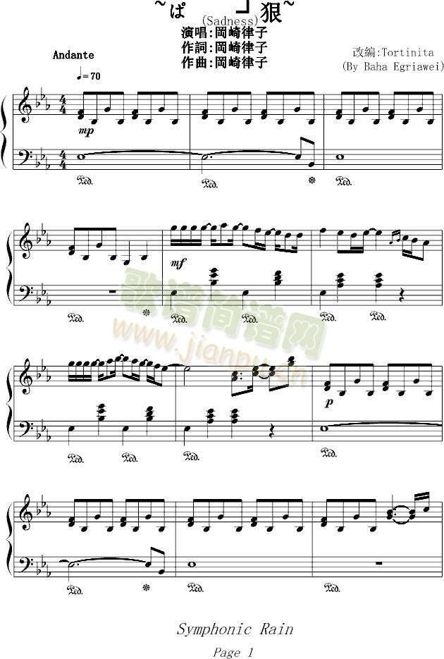 天空的彼端免费钢琴谱_五线谱:冈崎律子 点击: 1000 图片可能经过缩放,手机长按或点开后长按保存,电脑鼠标右键保存.