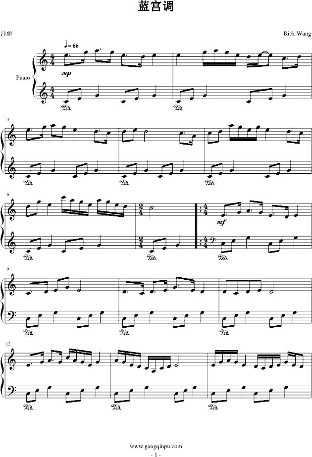 蓝宫调免费钢琴谱_五线谱/词曲:瑞瑞Rick423abc点击: 1000 图片可能经过缩放,手机长按或点开后长按保存,电脑鼠标右键保存.