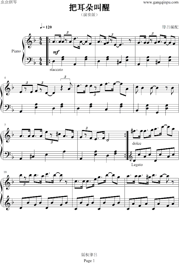 把耳朵叫醒免费钢琴谱_五线谱:金海心 点击: 1000 图片可能经过缩放,手机长按或点开后长按保存,电脑鼠标右键保存.