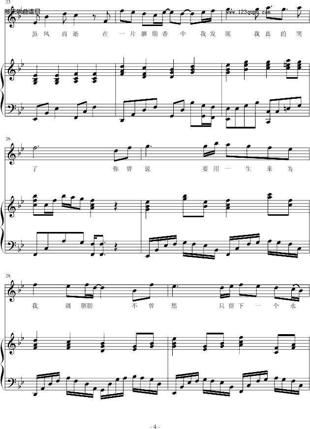 胭脂泪-∮亞→薩∮免费钢琴谱_五线谱:未知 点击: 1000 图片可能经过缩放,手机长按或点开后长按保存,电脑鼠标右键保存.