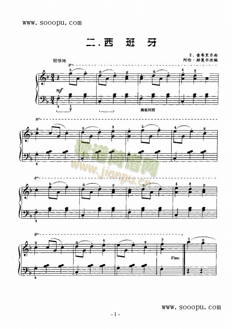 西班牙 键盘类 钢琴免费钢琴谱_五线谱:E.查布里尔 点击: 1000 图片可能经过缩放,手机长按或点开后长按保存,电脑鼠标右键保存.