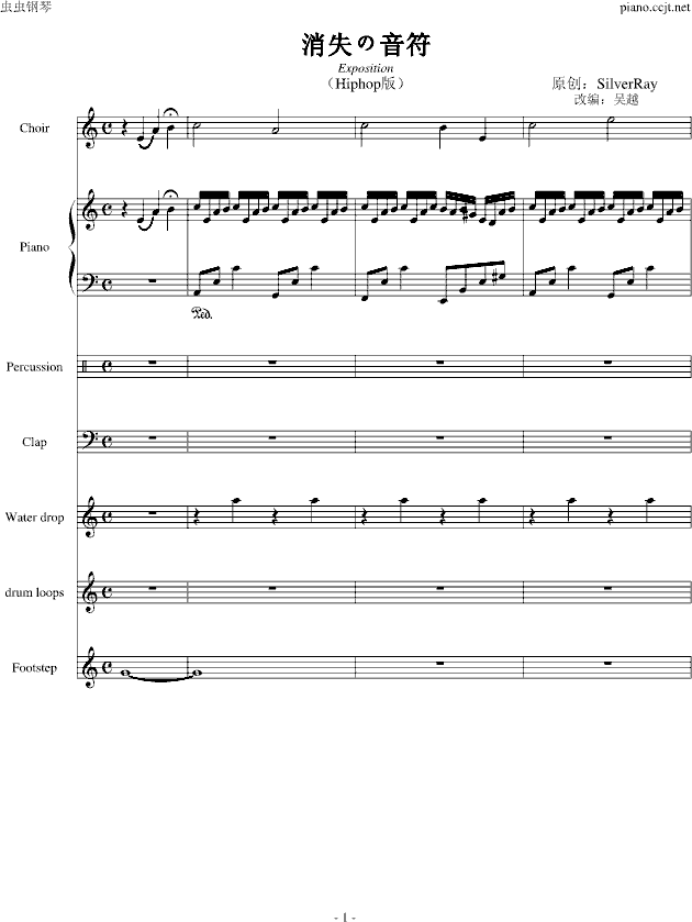消失の音符(Hiphop版)-钢琴谱(钢琴曲)-SilverRay免费钢琴谱_五线谱: 点击: 1000 图片可能经过缩放,手机长按或点开后长按保存,电脑鼠标右键保存.