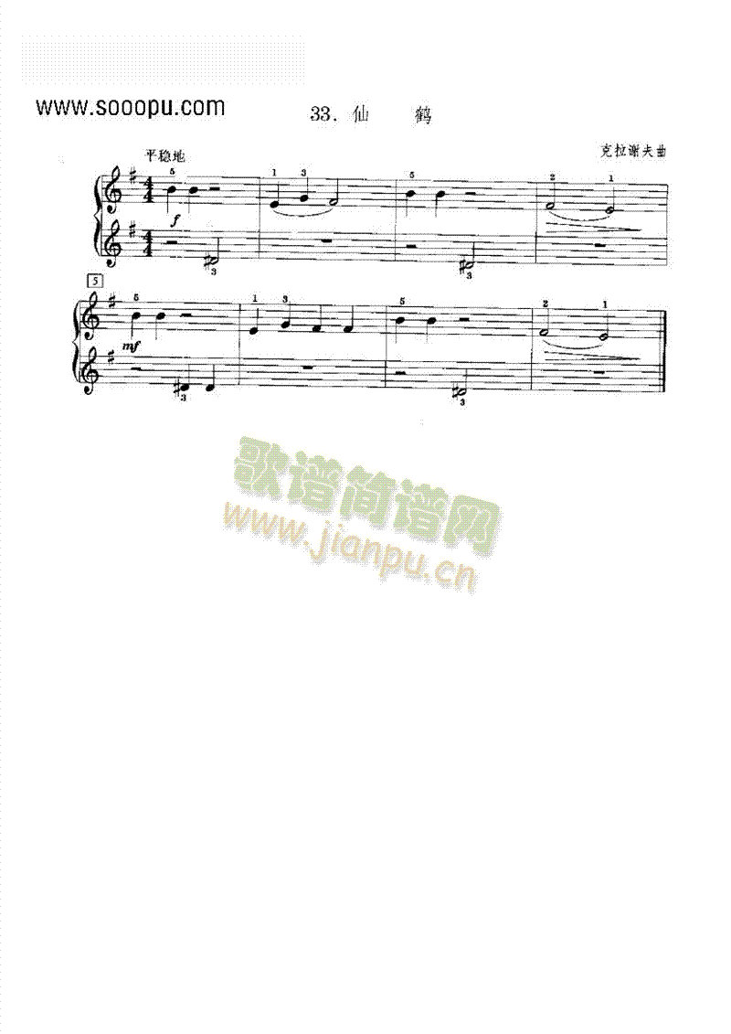 仙鹤(克拉谢夫) 键盘类 钢琴免费钢琴谱_五线谱:儿童钢琴 点击: 1000 图片可能经过缩放,手机长按或点开后长按保存,电脑鼠标右键保存.