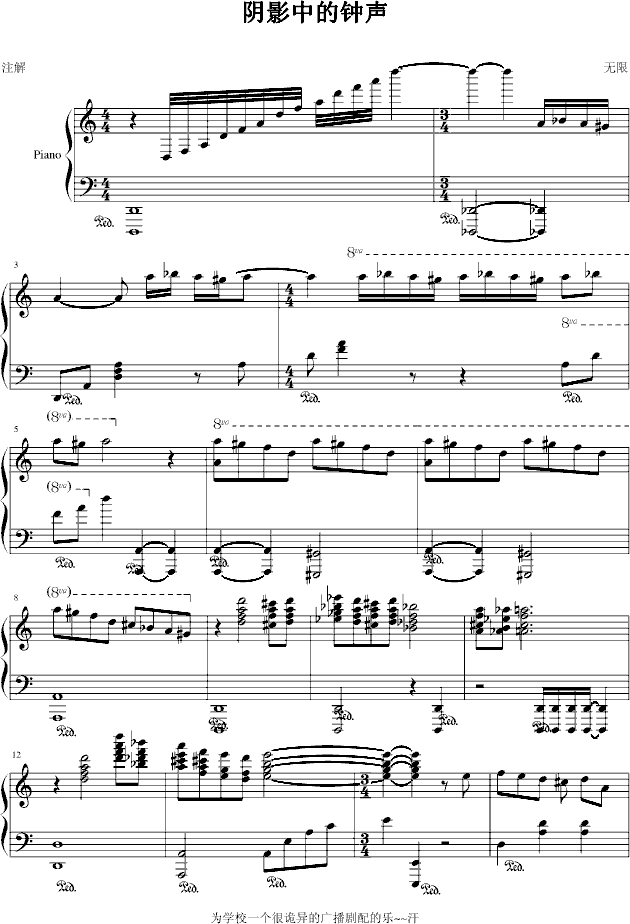 阴影中的钟声免费钢琴谱_五线谱:~无限~ 点击: 1000 图片可能经过缩放,手机长按或点开后长按保存,电脑鼠标右键保存.