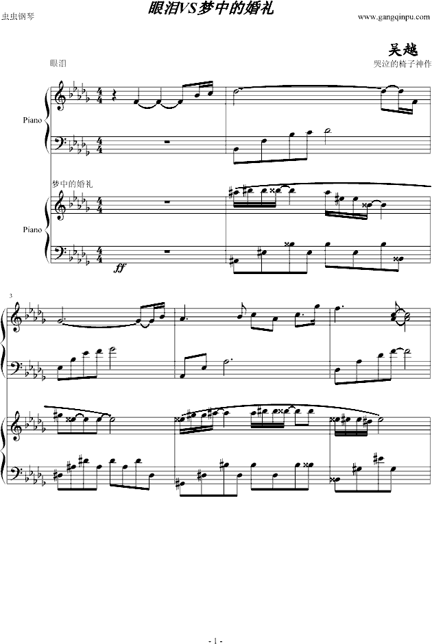 梦中的婚礼VS眼泪--钢琴谱(钢琴曲)-吴越免费钢琴谱_五线谱: 点击: 1000 图片可能经过缩放,手机长按或点开后长按保存,电脑鼠标右键保存.