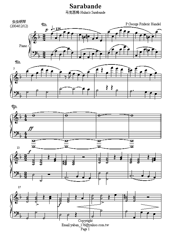 Handels Sarabande 韓德爾 薩拉邦免费钢琴谱_五线谱:马克西姆 点击: 1000 图片可能经过缩放,手机长按或点开后长按保存,电脑鼠标右键保存.