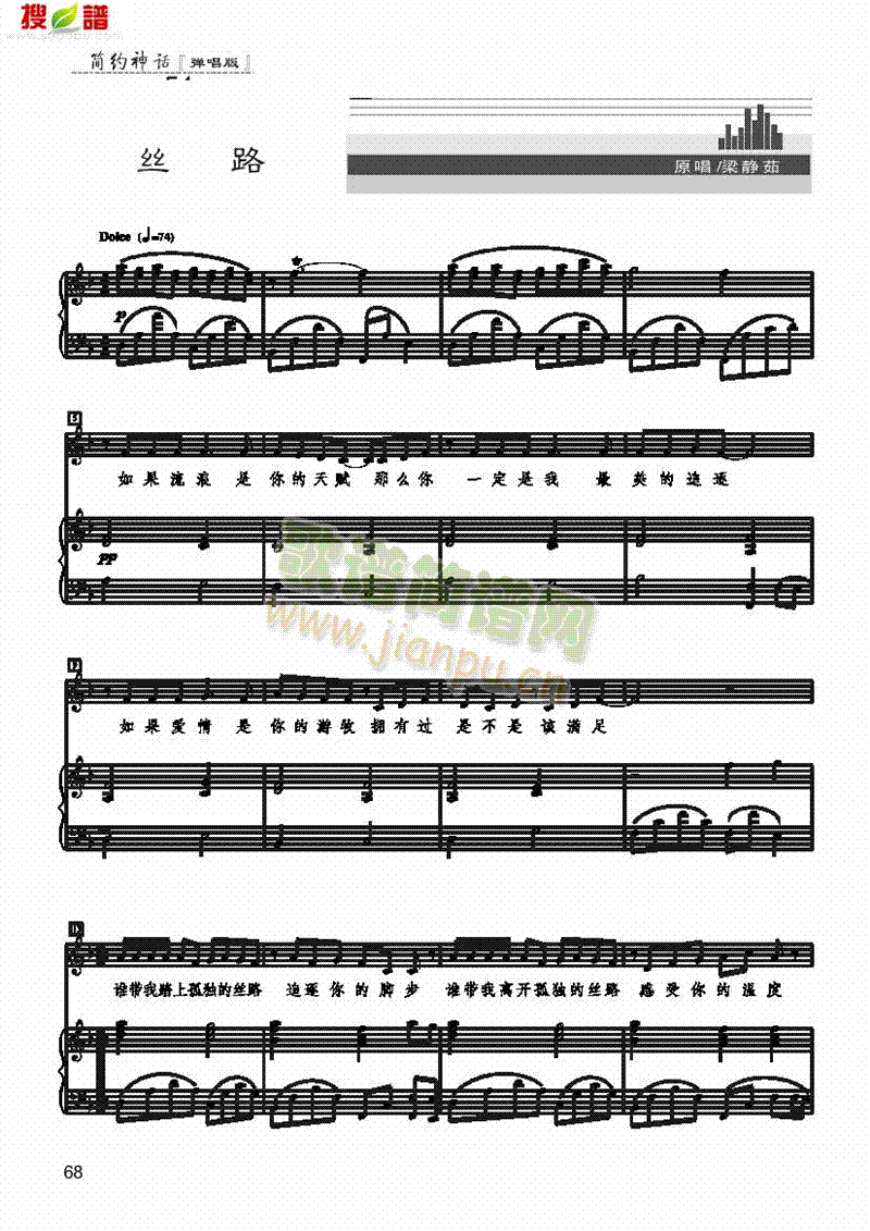 丝路 歌曲类 钢琴伴奏谱免费钢琴谱_五线谱:梁静茹 点击: 1000 图片可能经过缩放,手机长按或点开后长按保存,电脑鼠标右键保存.