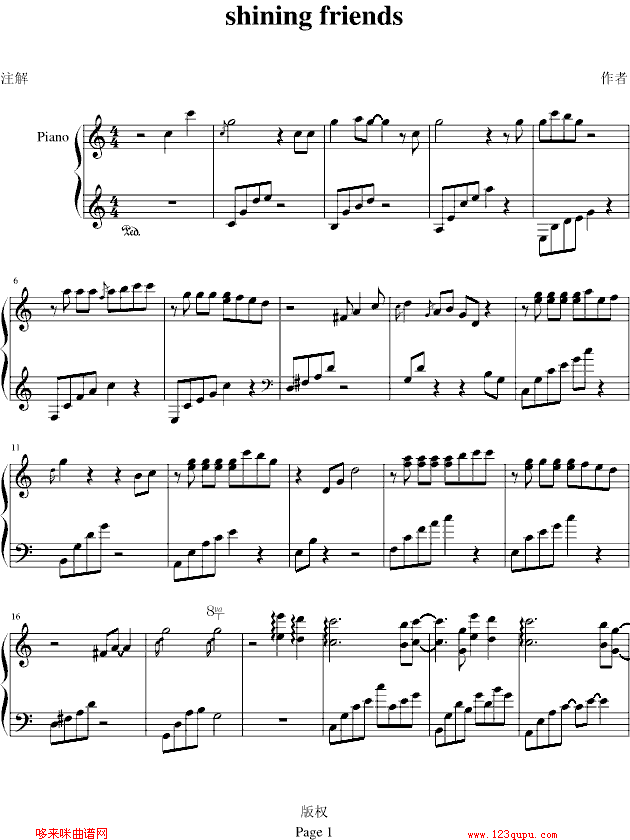 shining friends-四叶草免费钢琴谱_五线谱:未知 点击: 1000 图片可能经过缩放,手机长按或点开后长按保存,电脑鼠标右键保存.