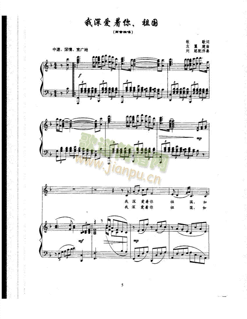 我深爱着你,祖国 歌曲类 钢琴伴奏谱免费钢琴谱_五线谱:左翼建 点击: 1000 图片可能经过缩放,手机长按或点开后长按保存,电脑鼠标右键保存.