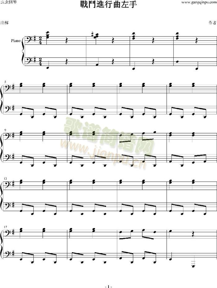 战门进行曲左手免费钢琴谱_五线谱:中国名曲 点击: 1000 图片可能经过缩放,手机长按或点开后长按保存,电脑鼠标右键保存.