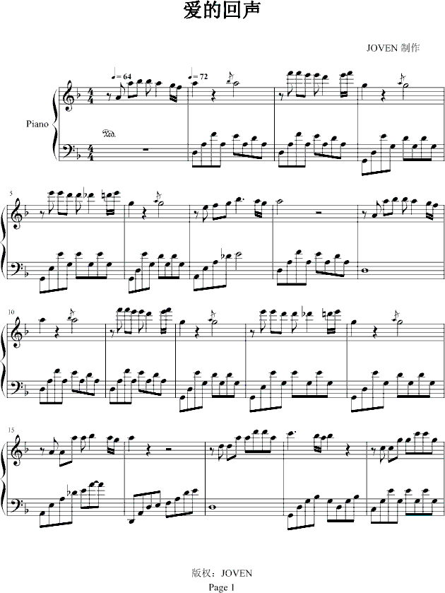 爱的回声免费钢琴谱_五线谱:其他侠名 点击: 1000 图片可能经过缩放,手机长按或点开后长按保存,电脑鼠标右键保存.