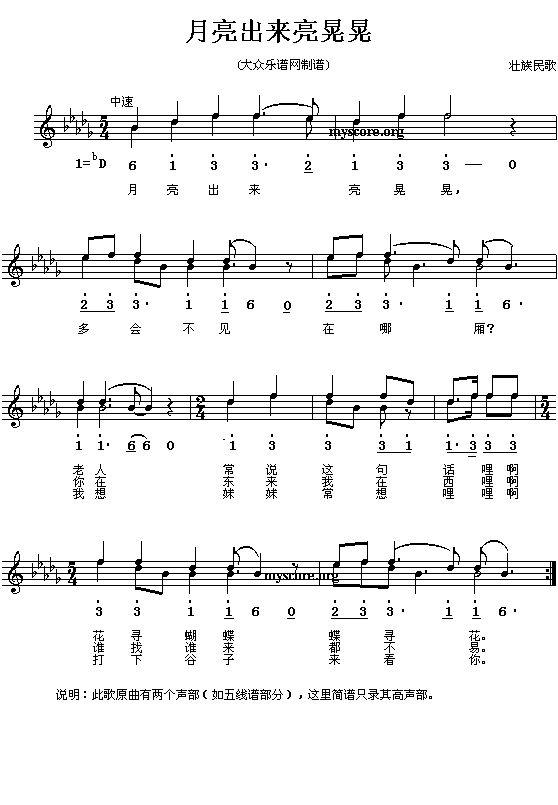 壮族民歌:月亮出来亮晃晃(简线对照)免费钢琴谱_五线谱:未知 点击: 1000 图片可能经过缩放,手机长按或点开后长按保存,电脑鼠标右键保存.
