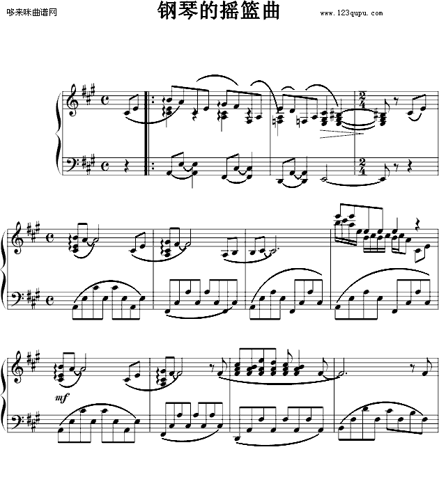 钢琴的摇篮曲-世界名曲免费钢琴谱_五线谱:未知 点击: 1000 图片可能经过缩放,手机长按或点开后长按保存,电脑鼠标右键保存.