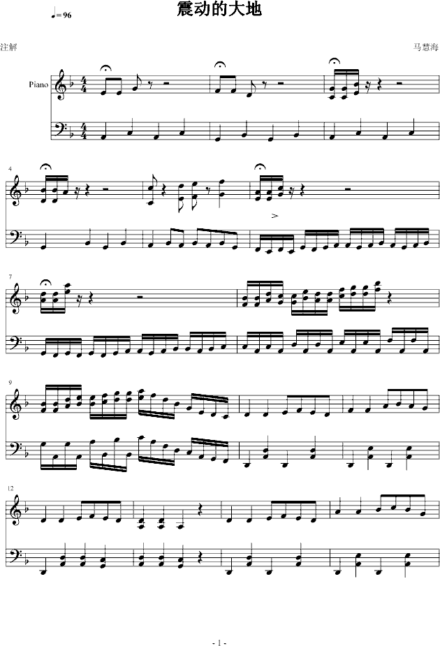 震动的大地免费钢琴谱_五线谱/词曲:mhhmhh点击: 1000 图片可能经过缩放,手机长按或点开后长按保存,电脑鼠标右键保存.