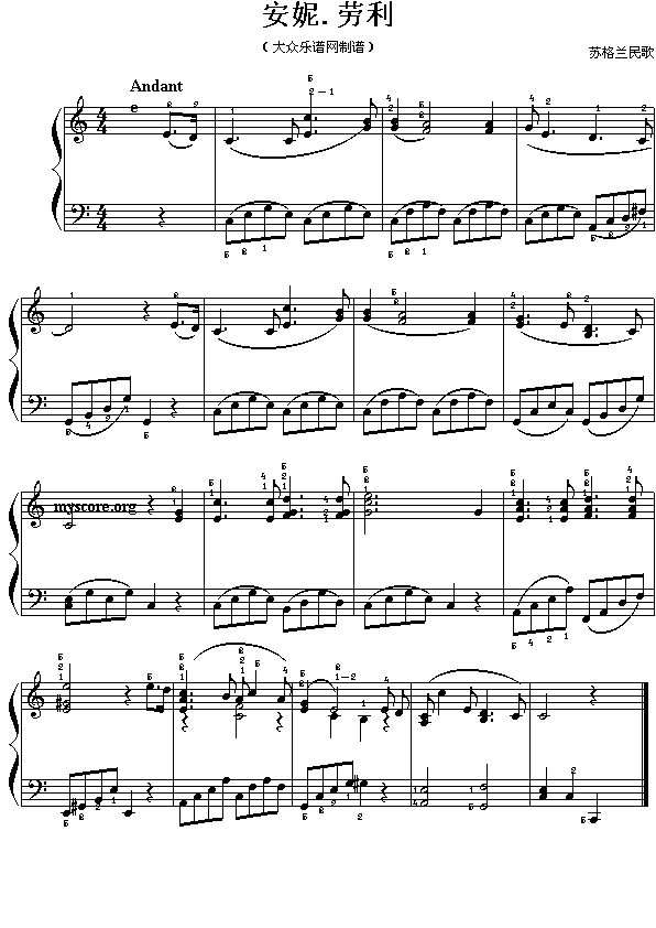 安妮.劳利(钢琴小曲)免费钢琴谱_五线谱: 点击: 1000 图片可能经过缩放,手机长按或点开后长按保存,电脑鼠标右键保存.