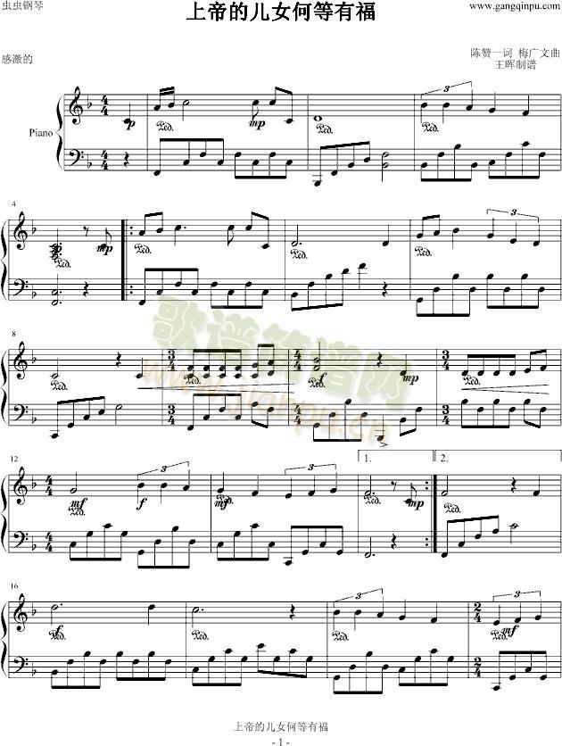 上帝的儿女何等有福免费钢琴谱_五线谱: 点击: 1000 图片可能经过缩放,手机长按或点开后长按保存,电脑鼠标右键保存.