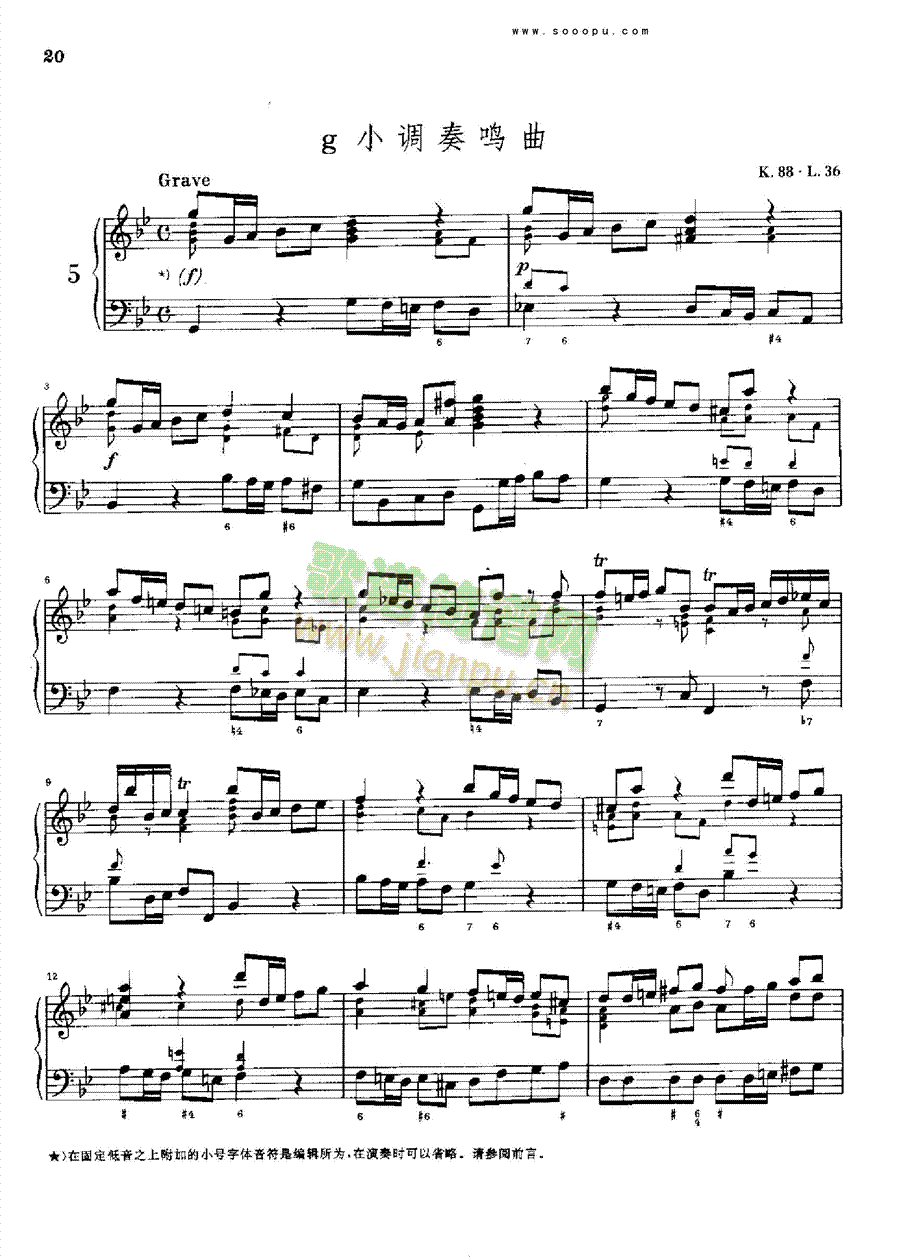 g小调奏鸣曲k88.L36 键盘类 钢琴免费钢琴谱_五线谱:斯卡拉蒂 点击: 1000 图片可能经过缩放,手机长按或点开后长按保存,电脑鼠标右键保存.