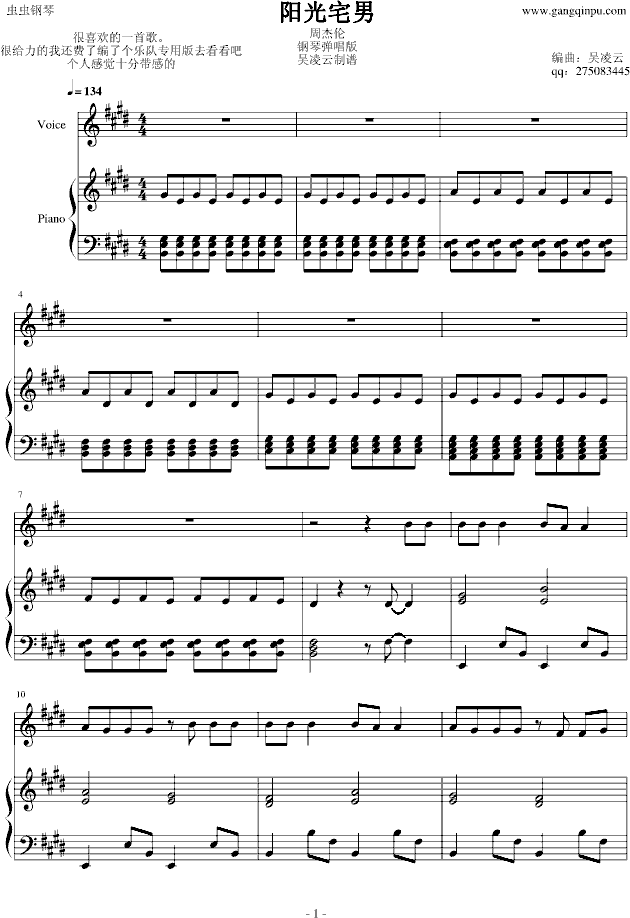 阳光宅男 周杰伦 钢琴伴奏版 吴凌云编制-钢琴谱(钢琴曲)-周杰伦免费钢琴谱_五线谱: 点击: 1000 图片可能经过缩放,手机长按或点开后长按保存,电脑鼠标右键保存.