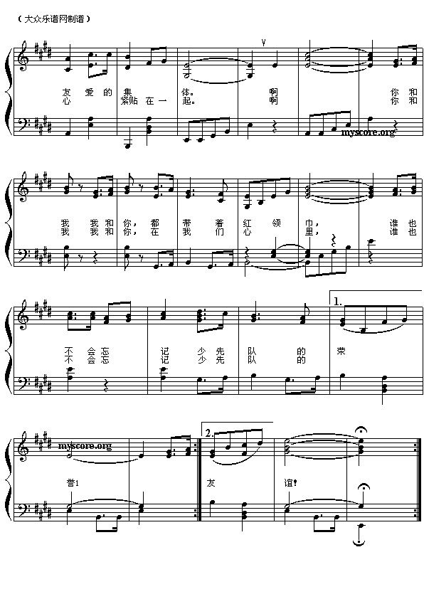 少先队友谊之歌(儿童歌曲钢琴伴奏)免费钢琴谱_五线谱: 点击: 1000 图片可能经过缩放,手机长按或点开后长按保存,电脑鼠标右键保存.