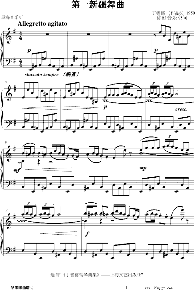 丁善德《第一新疆舞曲》-中国名曲免费钢琴谱_五线谱:未知 点击: 1000 图片可能经过缩放,手机长按或点开后长按保存,电脑鼠标右键保存.